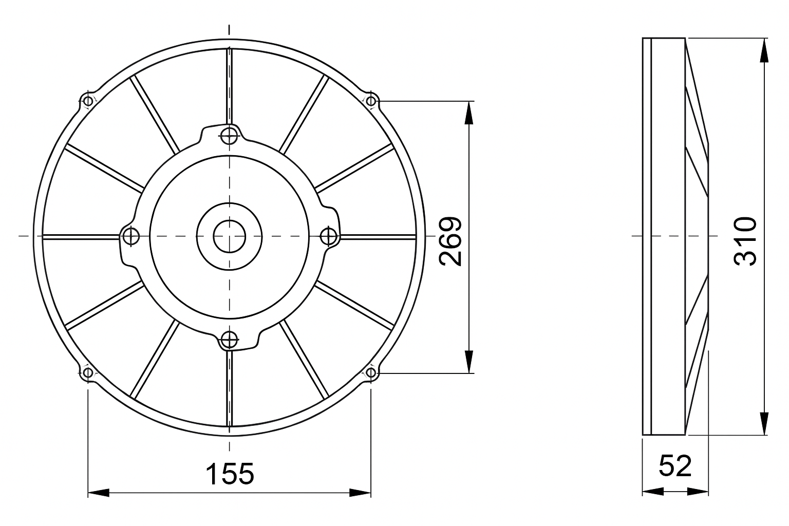 VENTILATOR AKSIALNI 280mm POTISNI 12V