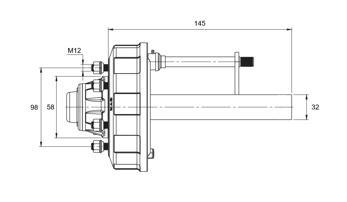 Stubakslen er beregnet til brug på forskellige typer trailere med bremsesystem. Stubakslens længde er 145 mm med en belastningskapacitet på op til 450 kg.