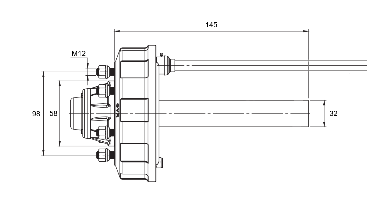 SEMIEJE CON FRENOS - 450 kg (4 TORNILLOS) - 145 mm