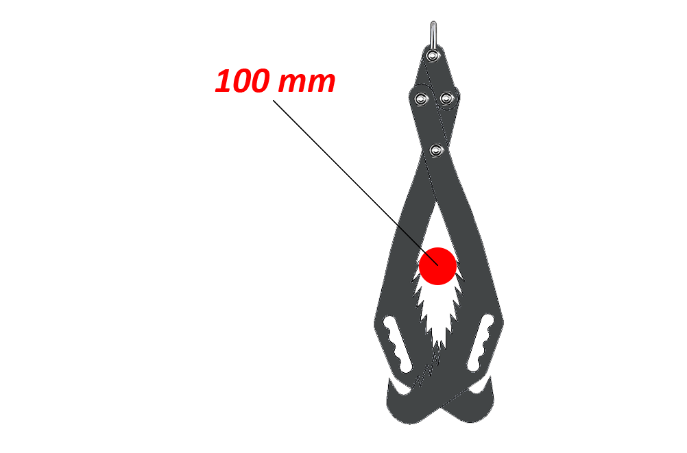 Portable manual forestry log tongs are equipped with a hook for quick and easy mounting and removal. The effective (working) width of the tongs ranges from 100 to 700 mm, while the maximum opening is 745 mm. The tongs are made of robust S355 structural steel with a thickness of 12 mm. The set includes the tongs, a mounting hook, and reinforced M20 bolts. The tongs are painted, providing additional protection against corrosion.