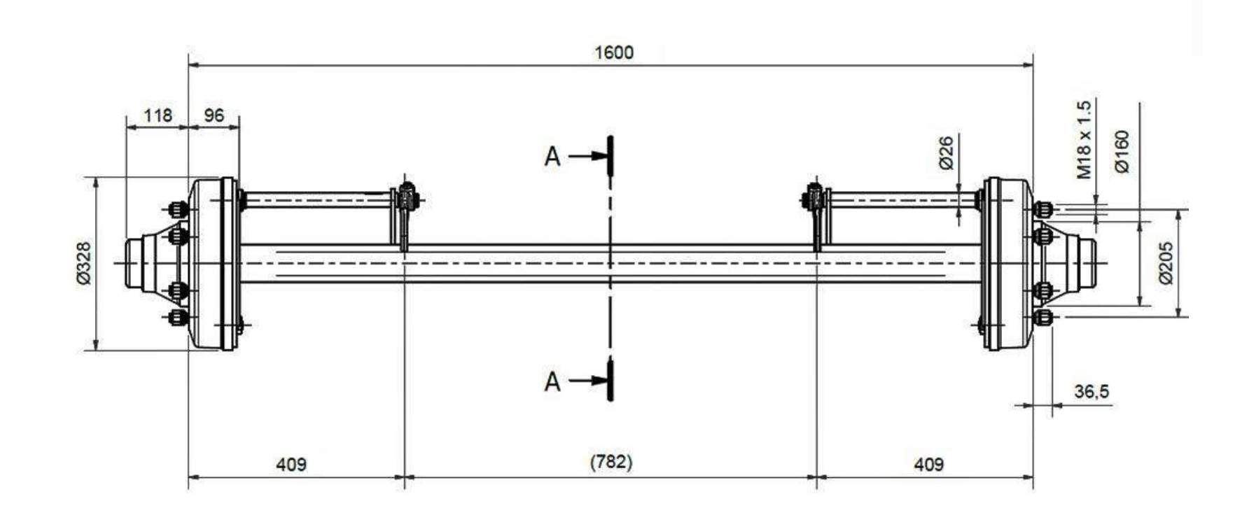 L'essieu de remorque avec frein est conçu pour une utilisation sûre et fiable sous des charges plus élevées (capacité de charge jusqu'à 7200 kg). Le système de freinage intégré assure un freinage efficace, tandis que la largeur de 1600 mm offre une plus grande stabilité de conduite, en particulier lors du transport de charges plus lourdes et sur routes ouvertes.