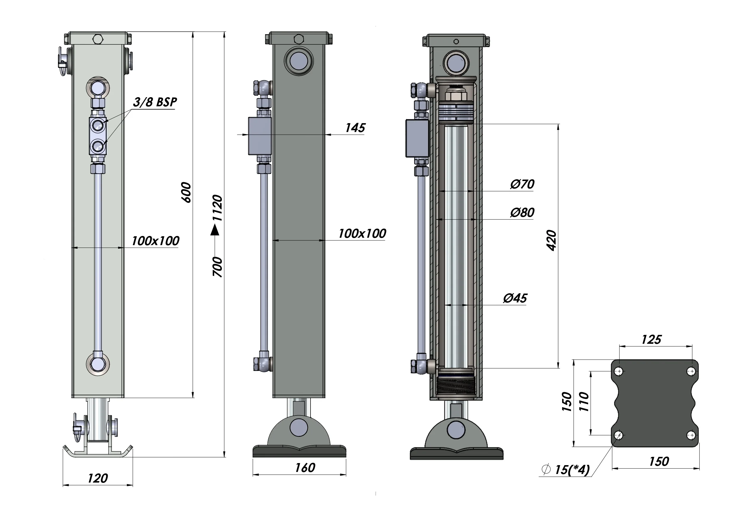 DOBBELTVIRKENDE HYDRAULISK STØTTEBEN (100x100x700 mm) - SLAG 420 mm - 5.000 kg