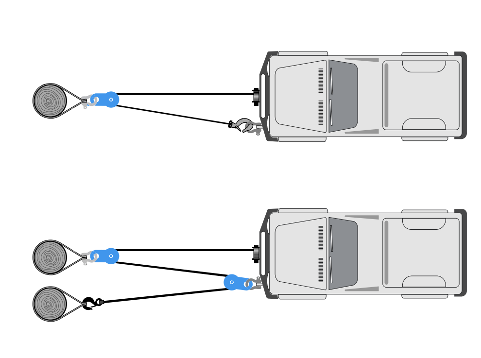 - Øker trekkraften til vinsjen for mer effektiv trekking.