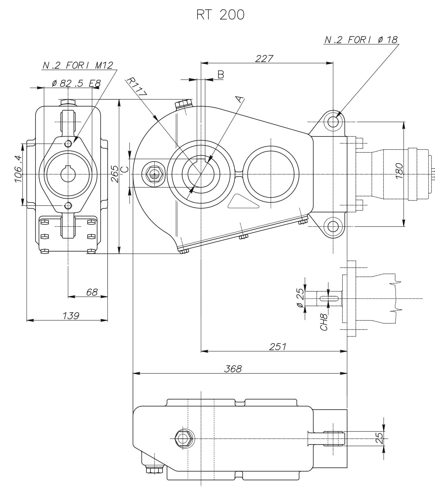 RIDUTTORE - MOLTIPLICATORE RT200 PER MOTORE IDRAULICO MP/MR relazioni 16,4:1