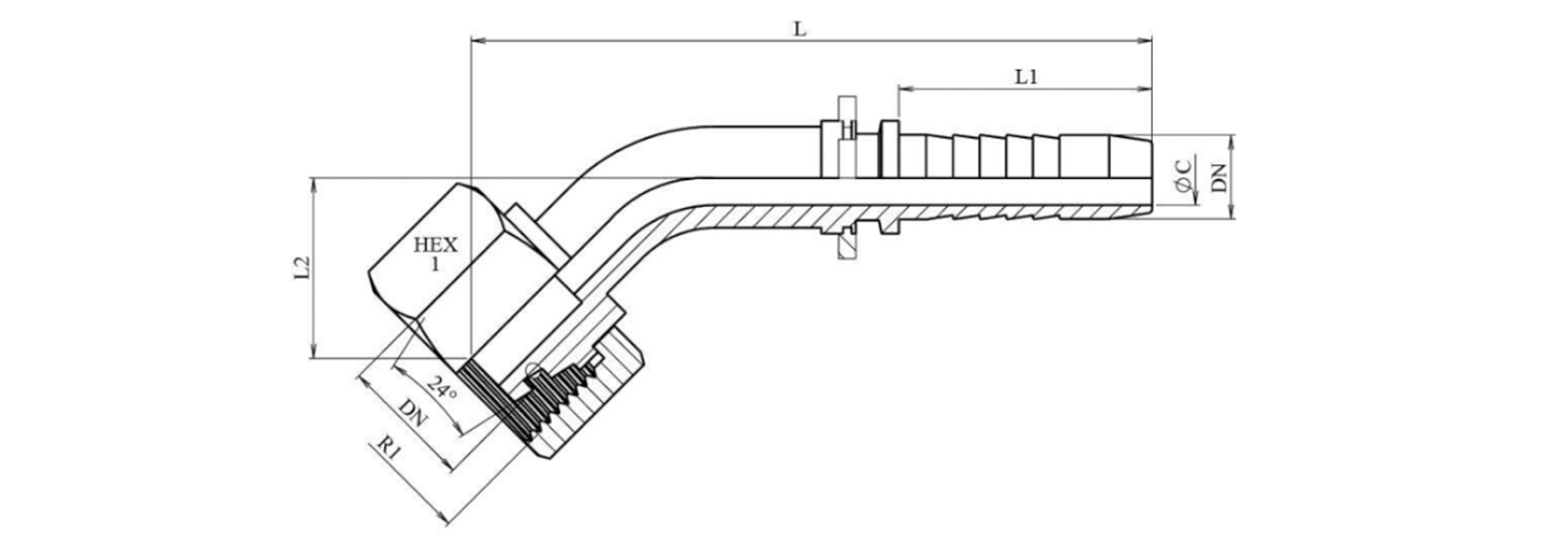 CONEXIUNE HIDRAULICĂ DKOL 35L CU COLȚ FEMELĂ 45 DN25-M45X2