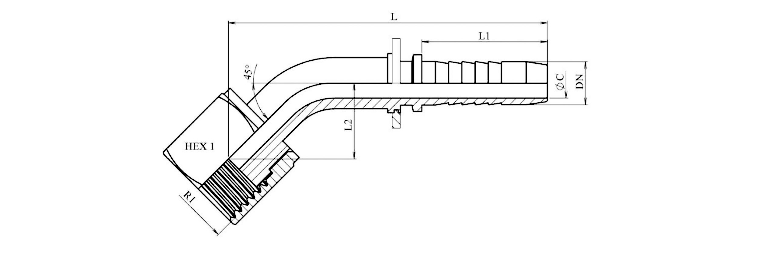 CONEXIUNE HIDRAULICĂ DKORFS COLȚ FEMEIE 45° DN10-11/16-16