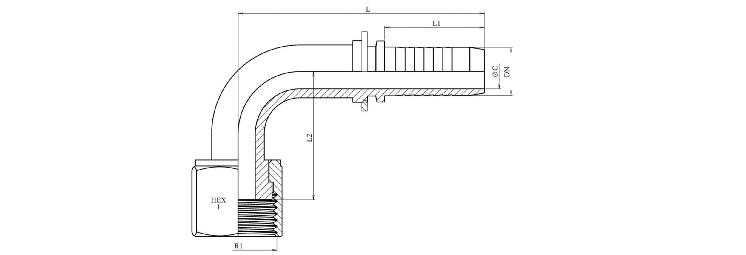 CONEXIUNE HIDRAULICĂ DKORFS COLȚ FEMELĂ 90° DN19-1 -14