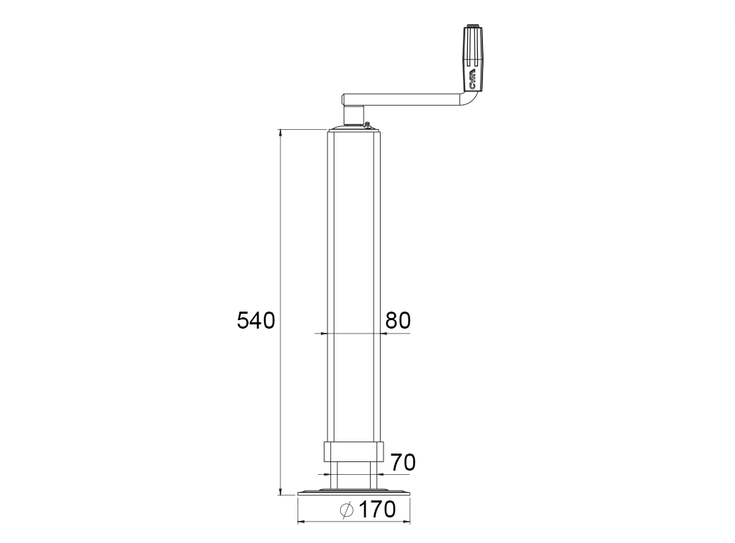 Picioarul suport filetat este conceput pentru a asigura un suport stabil și sigur pentru remorci. Permite ajustarea manuală facilă a înălțimii prin rotirea mecanismului filetat, asigurând o adaptare precisă la suprafața solului și la cerințele operaționale.